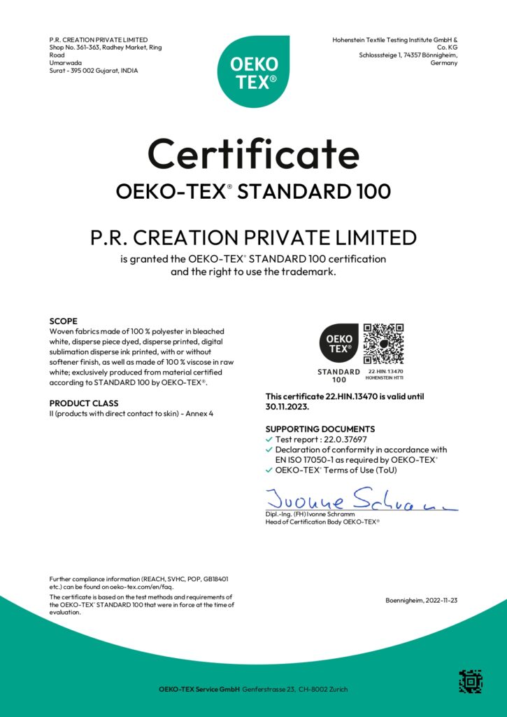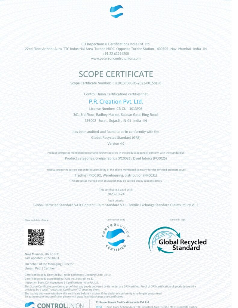 We are proud to have received multiple certifications, such as GRS, OEKO-TEX Standard 100, ISO-9001 etc, which exemplify our unwavering